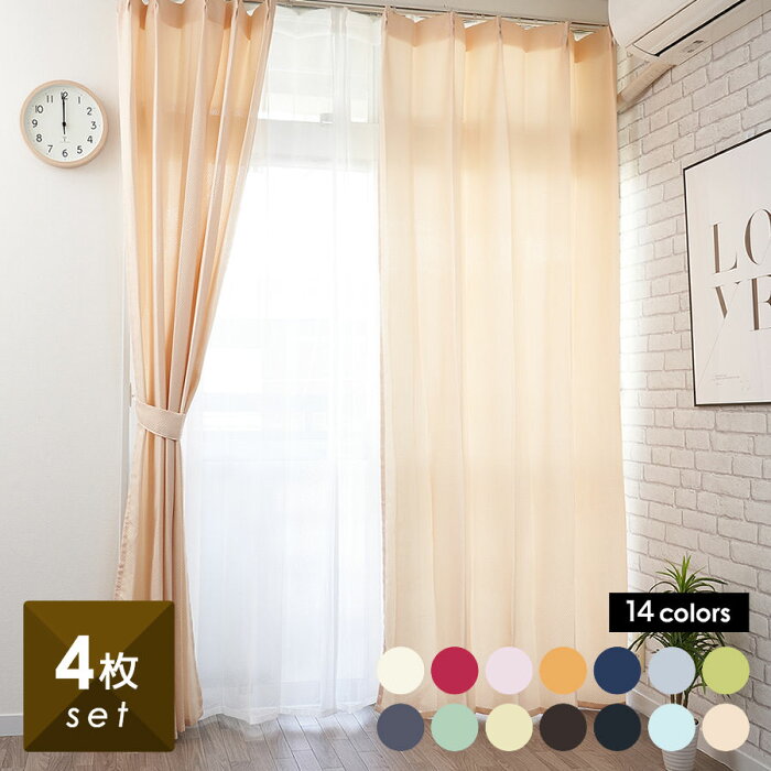 ブラック/グレー/ライトグレー/ネイビー/ブルーグリーン/グリーン/イエローグリーン/アイボリー/ベージュ/ブラウン/クリームイエロー/オレンジ/ピンク/レッドサイズ 幅100X丈110cm4枚組幅100X丈135cm4枚組幅100X丈178cm4枚組幅100X丈200cm4枚組幅100X丈220cm4枚組レースカーテンはそれぞれの丈から2cm短くなります。