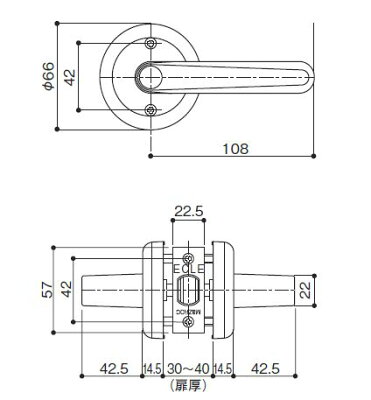 色:ゴールド バックセット:60mm 扉厚:30〜40mm。