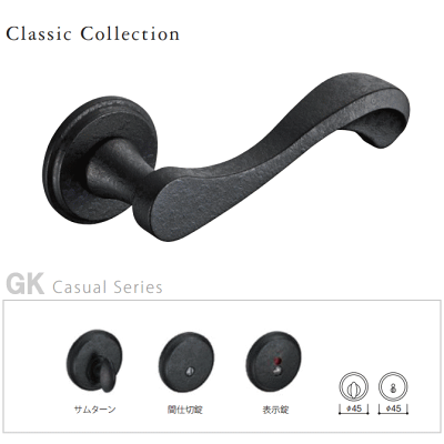 ■カワジュン レバーハンドル 基本パーツ構成 ■カワジュン レバーハンドル デザインと錠・カラーイメージ 《クラッシックコレクション》→アンティークなシリーズでコーディネイトできます。