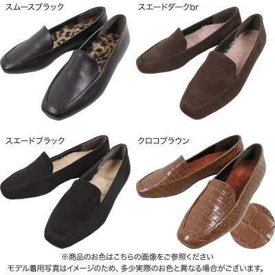 特別セール★ファー中敷きSETスクエアトゥローファー [I1961] レディース 靴 シューズ クロコ スムース スエード フラット ローヒール 黒 パンプス ローファー 大人 ぺたんこ フラットシューズ オペラシューズ きれいめ 黒 ブラック 中敷き