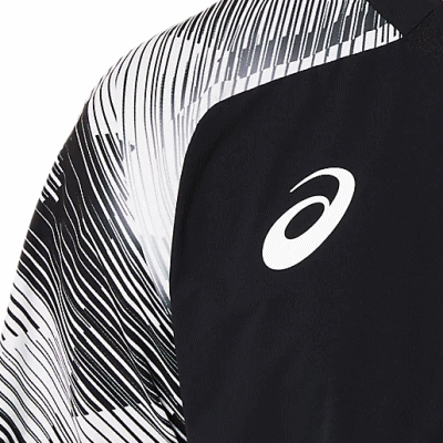 ストレッチ性のある素材を使用したASICS JAPONISMグラフィックの長袖ピステ。