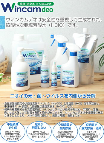------------------------------------- ※電話:0743-20-2579(月〜金 AM10:00〜PM8:00 / 日 AM10:00〜PM5:00) ※E-Mail:sales_minna@kaigo-okumura.co.jp(終日お受付け可) 次亜塩素酸水ウィンカムデオ 100mlミストボトル×10本(100ppm) 次亜塩素酸水ウィンカムデオ 空間除菌に最適☆