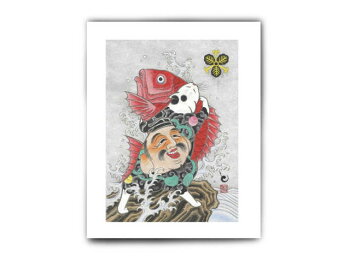 MONMON CATS Cat with Red Fish Print モンモンキャット 絵 アートパネル ポスター 壁掛け 絵画 猫 刺青 イレズミ tattoo タトゥー ねこ ネコ アメリカ カリフォルニア